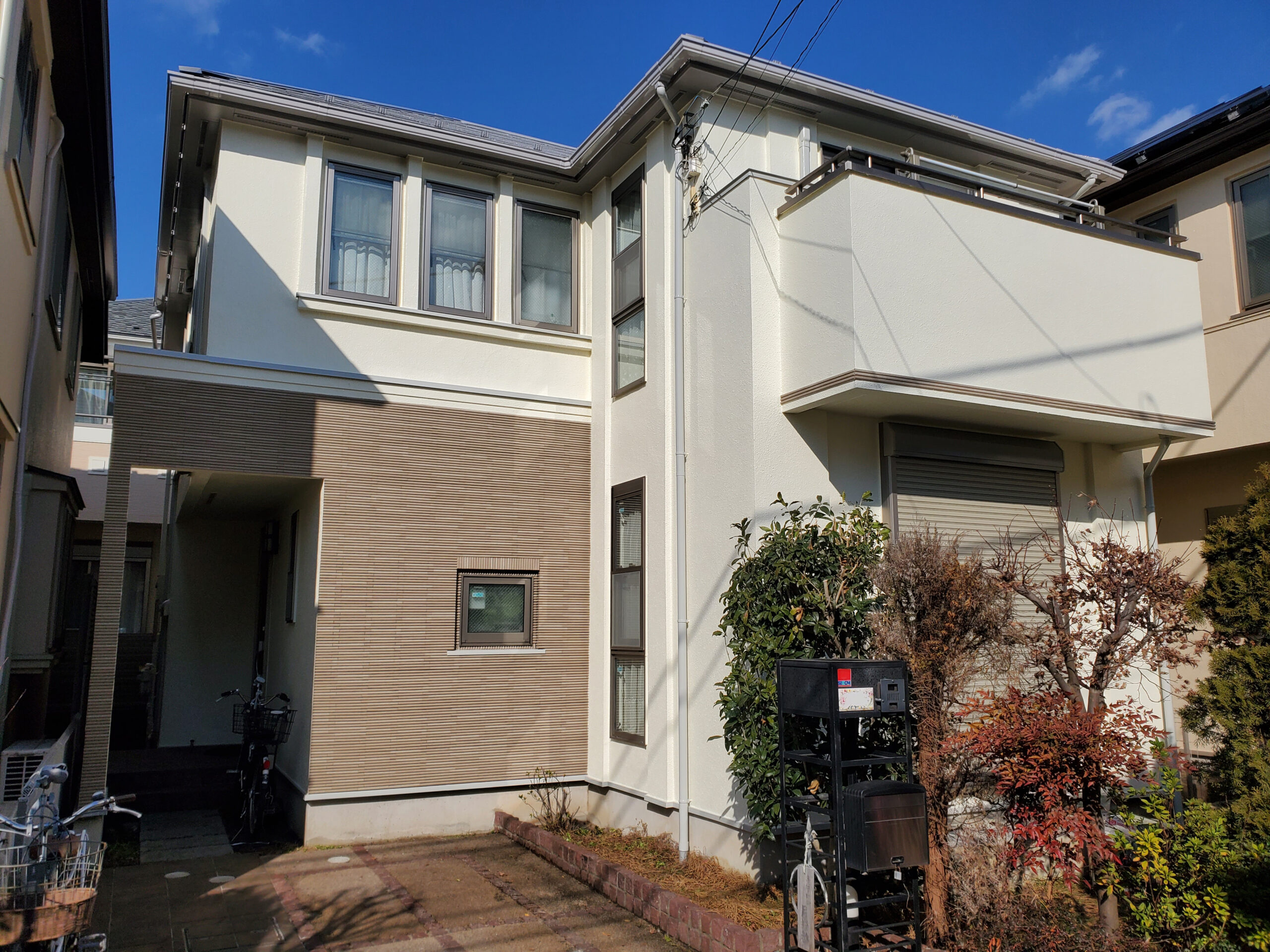 【施工内容】外壁:外壁塗装 屋根:屋根塗装 【使用商材】外壁:シリコンREVO1000 屋根:快適サーモSi 【施工エリア】東京都世田谷区 【建物種別】戸建て住宅 【工事期間】― 【担当者コメント】北面の外壁にコケや藻の付着が見られ、全体的にくすんだ印象になっていました。今回の塗り替えで見違えるほどきれいになり、お施主様からも「新築みたい」とお言葉をいただきました。
