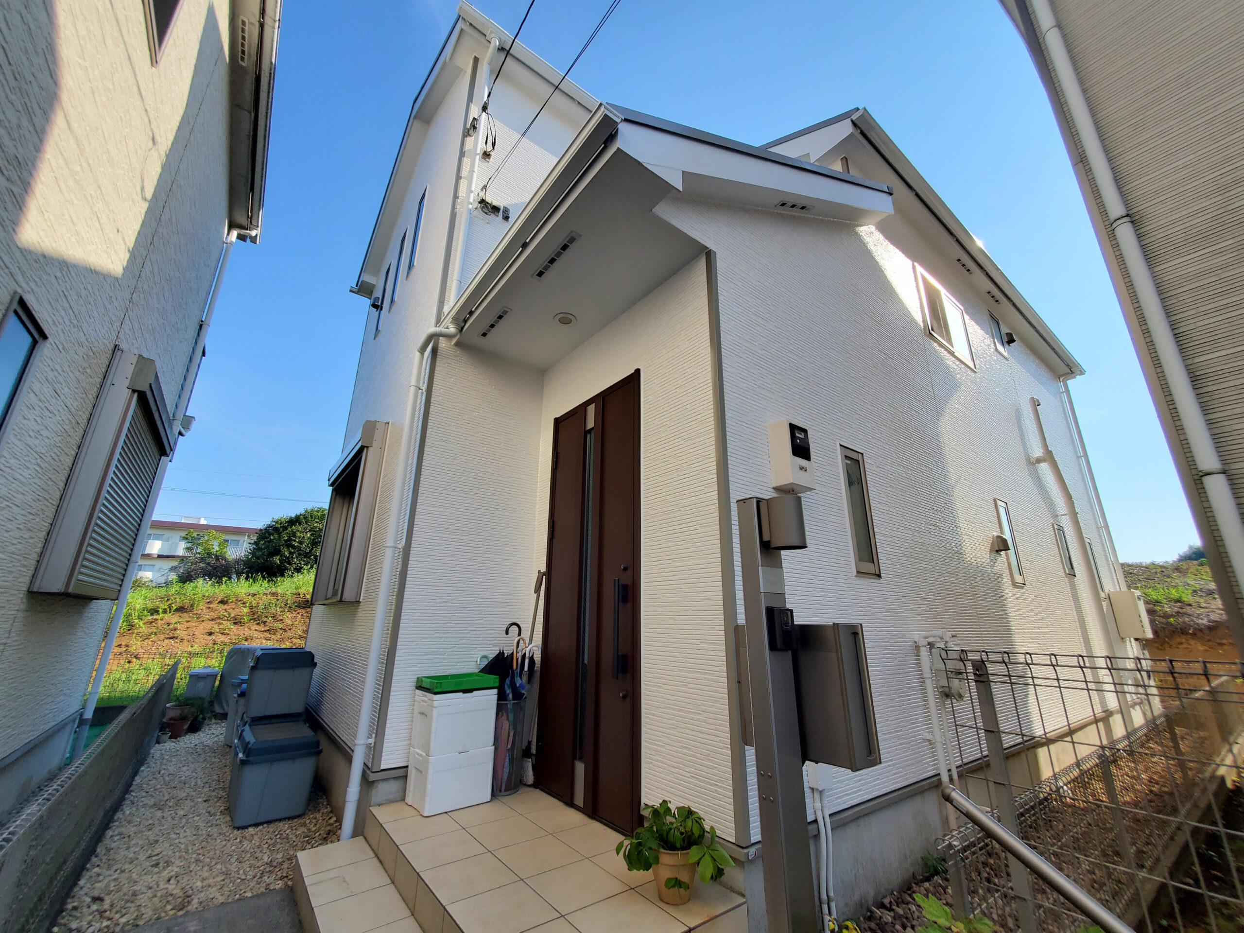 【施工内容】外壁:外壁塗装 屋根:屋根塗装 【使用商材】外壁:シリコンREVO1000 屋根:快適サーモSi 【施工エリア】東京都稲城市 【建物種別】戸建て住宅 【工事期間】― 【担当者コメント】北面の外壁にコケや藻の付着が見られ、全体的にくすんだ印象になっていました。今回の塗り替えで見違えるほどきれいになり、お施主様からも「新築みたい」とお言葉をいただきました。